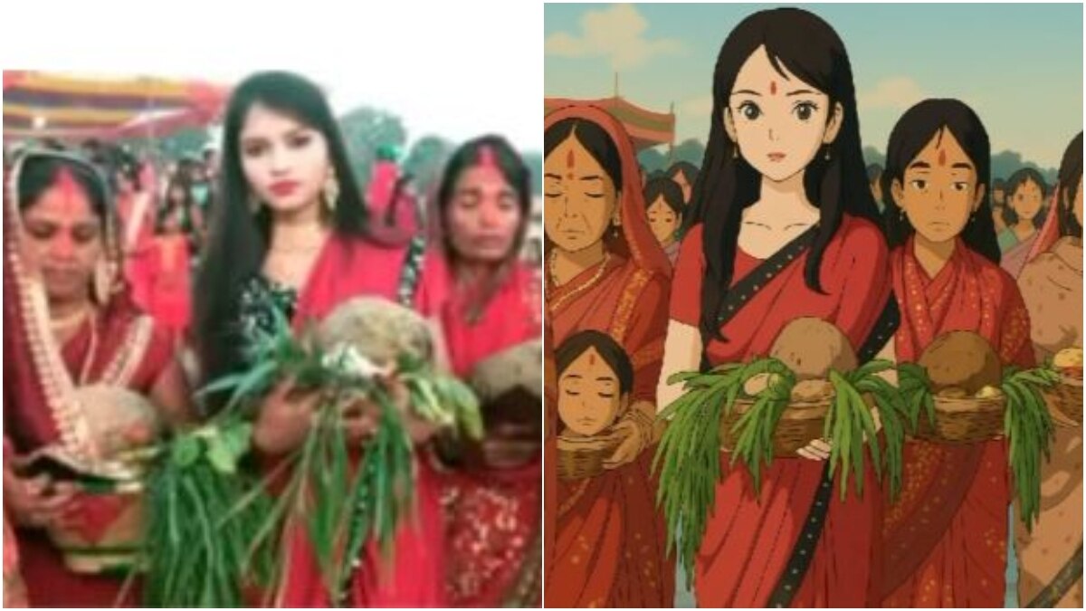 इंस्टाग्राम यूज़र राहुल कुमार (@a_sarcastic_bihari), जो बिहार से हैं लेकिन बेंगलुरु में रहते हैं. उन्होंने छठ पूजा से जुड़ी अपने परिवार की महिलाओं की कुछ तस्वीरें ChatGPT को दीं, ताकि उन्हें जिबली-स्टाइल में बदला जा सके. हालांकि AI ने तस्वीरों को स्टाइलिश बनाने की कोशिश की, लेकिन एक फोटो में ऐसी खौफनाक गलती कर दी कि लोग हैरान रह गए.