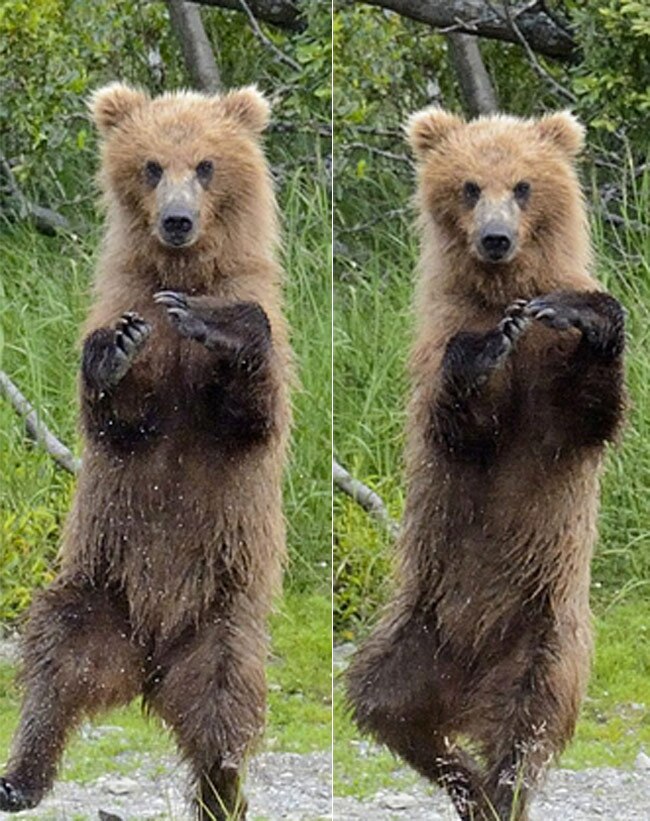भालू पीएसवाई के डांस स्टेप की कॉपी करता हुआ दिखा. हालांकि भालू गंगनम करते हुए दिखता है, लेकिन सच्चाई ये है कि वो नदी के पानी में गीला होने के बाद अपने आप को सुखाने की कोशिश कर रहा है. फोटोग्राफर ने जब भालू को ऐसा करते हुए देखा तो उनकी भी हंसी छूट गई और उन्होंने एक के बाद एक भालू की कई तस्वीरें ले डालीं.