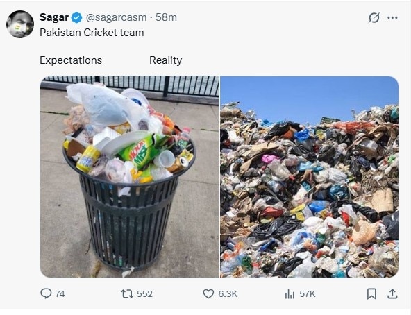 मैच खत्म होते ही सोशल मीडिया पर पाकिस्तान ट्रेंड करने लगा. एक्स और इंस्टाग्राम पर मीम्स की बाढ़ आ गई. कई यूजर्स ने 176 रन के लक्ष्य और 114 पर ऑलआउट स्कोर की तुलना करते हुए मजेदार पोस्ट शेयर किए.मीम क्रिएटर्स ने पाकिस्तान की बल्लेबाजी को लेकर तंज कसते हुए तस्वीरों और डायलॉग्स के जरिए पूरी हार की कहानी कह दी.