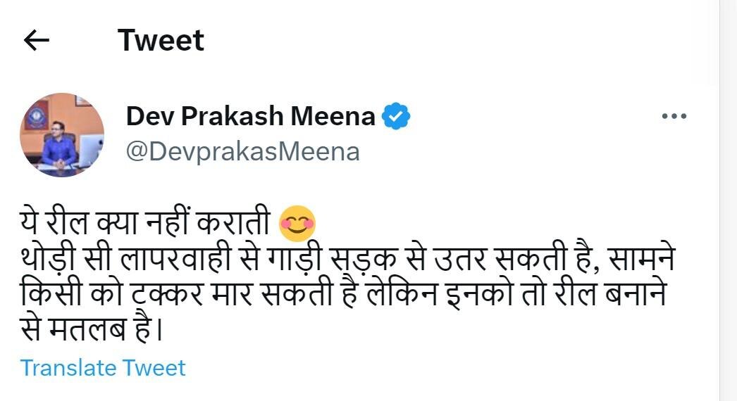 उन्होंने इस खबर से जुड़ा स्क्रीनशॉट शेयर किया है. साथ ही कैप्शन में लिखा, 'ये रील क्या नहीं कराती. थोड़ी सी लापरवाही से गाड़ी सड़क से उतर सकती है, सामने किसी को टक्कर मार सकती है लेकिन इनको तो रील बनाने से मतलब है.' उनके इस ट्वीट पर लोग खूब कमेंट कर रहे हैं.