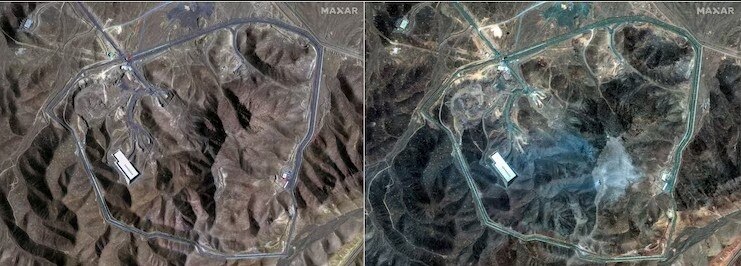 वहीं ईरान में तबाही की कई तस्वीरें सामने आई. इजरायल की सबसे बड़ी कामयाबी फोर्डो भूमिगत परिसर के उपग्रह चित्रों को दिखाती है.अमेरिका द्वारा इस भूमिगत परमाणु केंद्र पर हमला करने से पहले और बाद की स्थिति देखिए. (फोटो: रॉयटर्स)