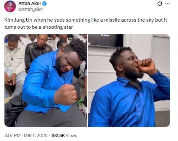 इंटरनेट पर एक और मीम तेजी से शेयर किया जा रहा है. इसमें किम जोंग उन आसमान की ओर देखते हुए दिखाई देते हैं.कैप्शन में लिखा गया है कि उन्हें लगा कोई मिसाइल उत्तर कोरिया की ओर आ रही है, लेकिन बाद में पता चला कि वह सिर्फ टूटता हुआ तारा था.