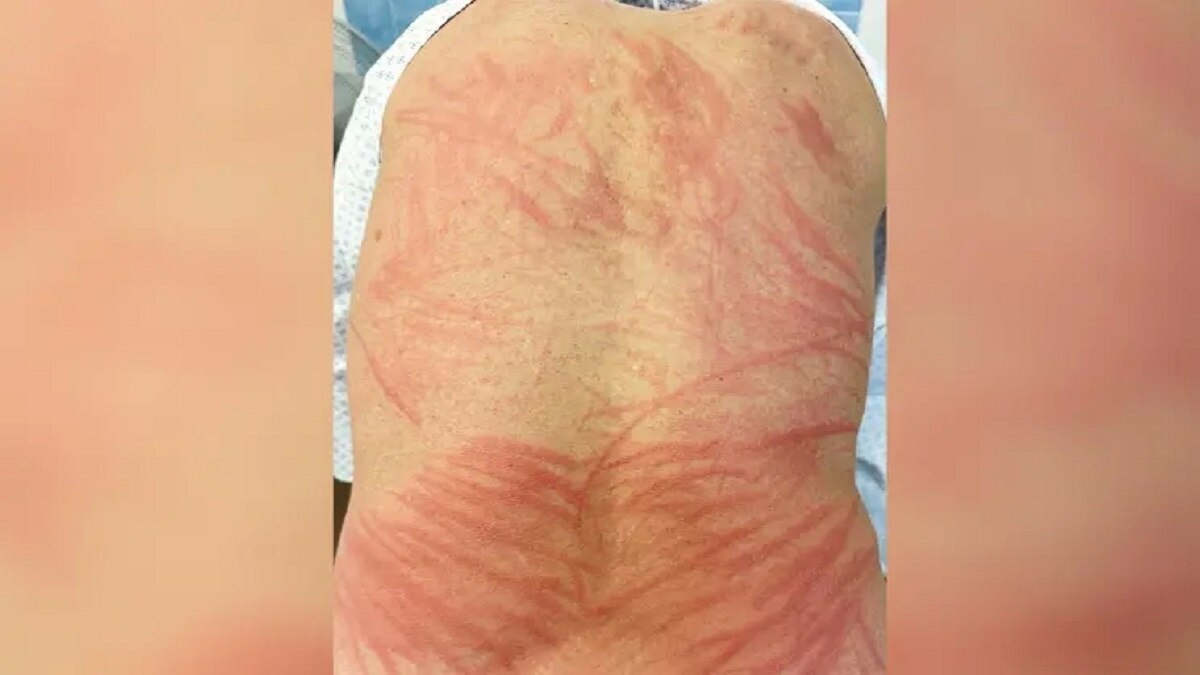 "द न्यू इंग्लैंड जर्नल ऑफ मेडिसिन" द्वारा जारी तस्वीर में मरीज की पीठ और कूल्हे पर खतरनाक धारियां दिखाई दे रही हैं. ऐसा दिख रहा है कि मानो किसी ने उसकी पीठ पर कोड़े बरसाए हैं. शख्स जब बुरी हालत में डॉक्टर के पास पहुंचा तो डॉक्टरों ने उसे "शिइटेक डर्मेटाइटिस" से संक्रमित पाया, ये तब होता है जब कोई कच्चा या अधपका मशरूम खाता है.