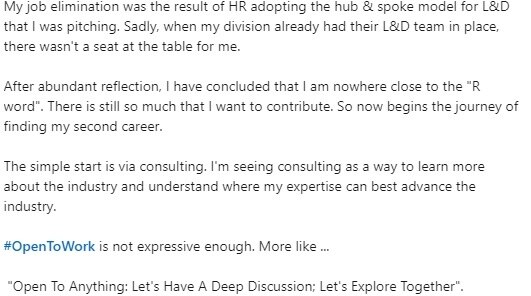 उन्होंने आगे बताया- इसके बाद हुआ ऐसा कि मुझे एचआर द्वारा एलएंडडी के लिए हब और स्पोक मॉडल को अपनाए जाने के चलते नौकरी से निकाल दिया गया. अपनी नौकरी खोने के बाद, बोगदान ने माइक्रोसॉफ्ट में अपना अनुभव साझा करने के लिए लिंक्डइन की मदद ली. इस पोस्ट को 15 अप्रैल को शेयर किया गया था. पोस्ट किए जाने के बाद से इसे करीब 3,000 लाइक्स और कई कमेंट्स मिल चुके हैं.