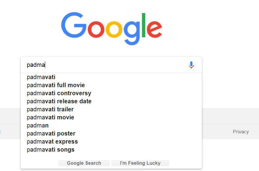 लेकिन खास बात ये है कि रिलीज से पहले ही इस मूवी को इंटरनेट यूजर गूगल और यूट्यूब पर काफी संख्या में सर्च कर रहे हैं. अगर प्राइवेट मोड (incognito) में आप गूगल खोलकर padmavati टाइप करते हैं टॉप सेकंड सजेशन दिखाई देता है- padmavati full movie. इसके साथ यूट्यूब का एक लिंक होता है जिसमें 2 घंटे 55 मिनट का एक वीडियो दिखाई देता है.