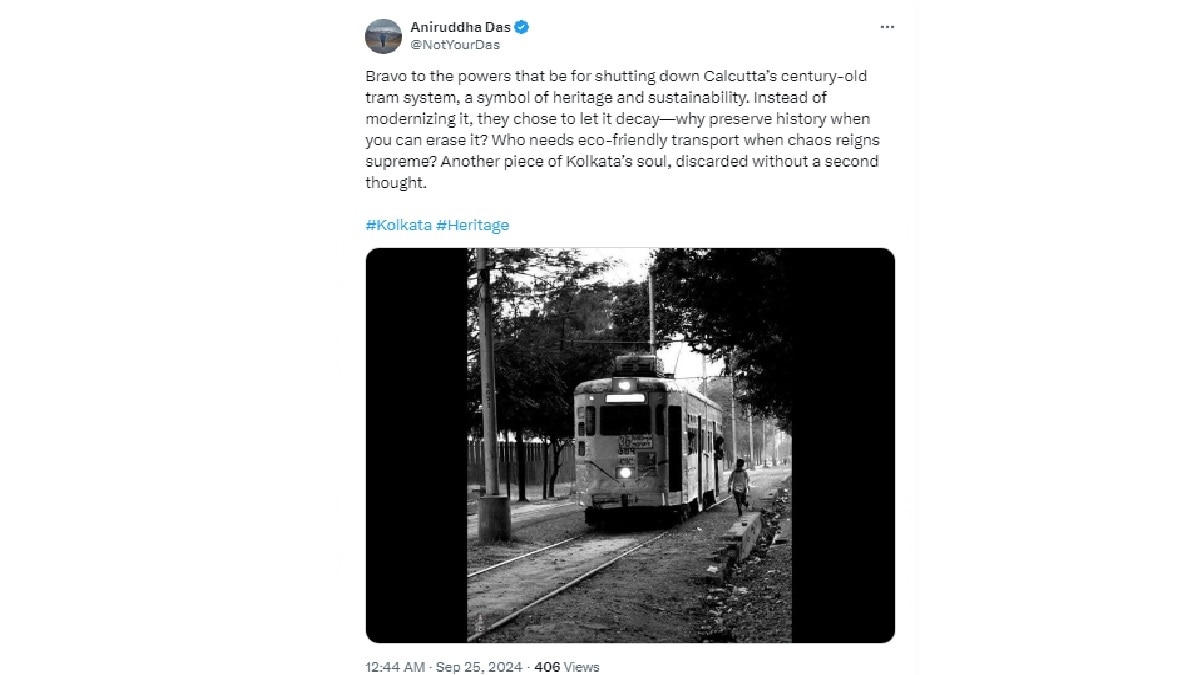 सरकार के फैसले पर निराशा व्यक्त करते हुए, एक व्यक्ति ने तंज करते हुए कहा, 'विरासत और स्थिरता के प्रतीक, कलकत्ता के सदियों पुराने ट्राम को बंद करने वाली शक्तियों को शाबाशी. इसे आधुनिक बनाने के बजाय, उन्होंने इसे नष्ट होने देना चुना- जब आप इसे मिटा सकते हैं तो इतिहास को संरक्षित क्यों करें? जब अराजकता चरम पर हो तो पर्यावरण-अनुकूल परिवहन की आवश्यकता किसे है? कोलकाता शहर की आत्मा का एक और टुकड़ा, बिना एक बार भी सोचे त्याग दिया गया.'