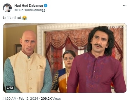 अब जानने वाली बात है कि इस अपने आप में काफी अनोखे एड को लेकर लोगों की क्या प्रतिक्रिया रही. बता दें कि लोगों ने इसपर ढेरों शानदार कमेंट किए. एक यूजर ने लिखा- , "रणवीर सिंह और जॉनी ...क्या क्रॉसओवर है.' एक अन्य ने कहा, 'पहले मुझे लगा कि डीपफेक है लेकिन रणवीर सिंह तो रणवीर सिंह हैं!!!'. एक ने लिखा- रणवीर के साथ जॉनी... कह दो ये झूठ है.