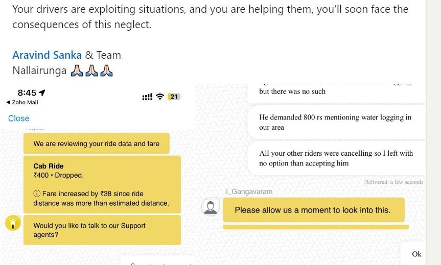 एजे स्किल डेवलपमेंट एकेडमी के संस्थापक और सीईओ अशोक राज राजेंद्रन ने आरोप लगाया कि उनके रैपिडो ड्राइवर ने 21 किमी की दूरी के लिए शुरुआत में 1000 रुपये की मांग की, जबकि ऐप पर किराया केवल 350 रुपये दिखा रहा था. हद तो तब हो गई जब उन्होंने इस अतिरिक्त शुल्क की शिकायत की, लेकिन कंपनी ने बिना जवाब दिए चैट बंद कर दी.