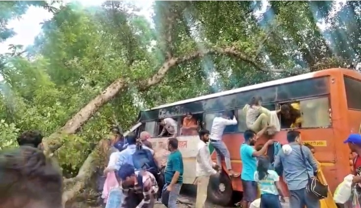 इस दौरान बस में फंसी एक महिला यात्री का लोग वीडियो बनाने लगे. इसपर उसने कहा- 'यहां जिंदगी मौत का सवाल है और आप वीडियो बना रहे हैं, अगर आकर पेड़ की डाल हटवाने में मदद करते तो हम लोग बाहर निकल आते.' जिसके बाद वीडियो शूट कर रहे लड़के को भीड़ ने वहां से हटा दिया.