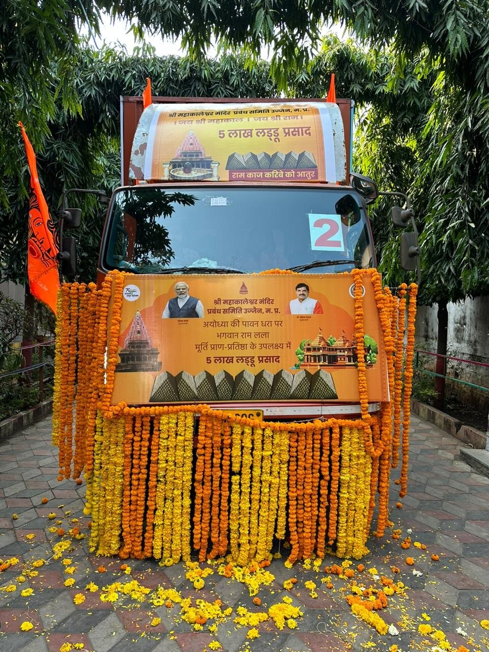 मध्य प्रदेश के मुख्यमंत्री मोहन यादव ने भोपाल के मानस भवन से अयोध्या के लिए लड्डुओं से भरे वाहनों को हरी झंडी दिखाई. 5 ट्रकों में 5 लाख लड्डू बनाकर श्री महाकालेश्वर मंदिर की ओर से भेजे जा रहे हैं. 22 जनवरी को अयोध्या में बांटने के लिए महाकाल मंदिर की ओर से ये लड्डू बनवाए गए हैं. (रिपोर्ट- रवीश पाल सिंह)