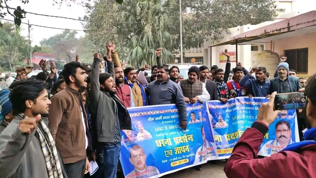 यूपी के बरेली में निलंबित सिटी मजिस्ट्रेट अलंकार अग्निहोत्री के खिलाफ भीम आर्मी ने प्रदर्शन किया. अग्निहोत्री ने नए यूजीसी नियमों का विरोध किया था और फिर इस्तीफा दे दिया था. हालांकि, अब भीम आर्मी ने यूजीसी के समर्थन में कलेक्ट्रेट गेट पर जमा होकर नारेबाजी की. साथ ही अलंकार अग्निहोत्री की बर्खास्तगी की और संपत्ति जांच की मांग उठाई.