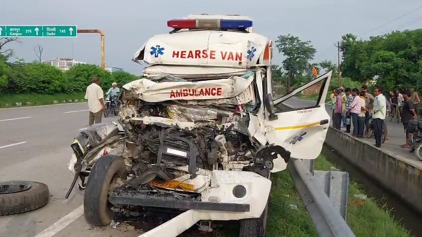 यह घटना गोपीगंज कोतवाली क्षेत्र के गोपपुर में नेशनल हाइवे 19 पर सोमवार की सुबह हुई. बताया गया कि दिल्ली एम्स में भर्ती वरुण नाम के मरीज की मौत के बाद उसके परिजन एम्बुलेंस से शव लेकर बिहार जा रहे थे. इसी दौरान एम्बुलेंस चालक को झपकी आ जाने के कारण एम्बुलेंस हाइवे के किनारे खड़े एक कंटेनर ट्रक से जा टकराई. टक्कर इतनी भीषण थी कि एम्बुलेंस के परखच्चे उड़ गए.