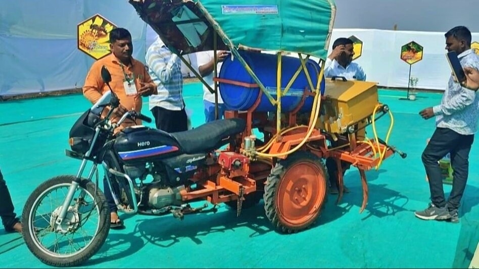 किसान बप्पासाहेब डावकर ने बताया कि एक पुरानी स्प्लेंडर बाइक का पीछे का टायर हटाकर वहां पर हल और बुआई की सामग्री के लिए जुगाड़ किया. इसके अलावा बाइक के दो टायरों को जोड़कर बाइक से मिनी ट्रैक्टर का रूप दिया. साथ ही धूप से बचने के लिए एक शेड भी लगाया.