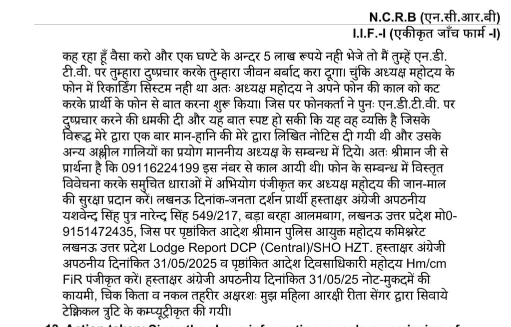 आनंद द्विवेदी ने पुलिस को बताया कि उन्हें एक अनजान फोन नंबर से कॉल करके पांच लाख रुपये की मांग की गई और पैसे न देने पर गलत मामलों में फंसाने और मीडिया के जरिए बदनाम करके जीवन बरबाद करने की बात कही.
