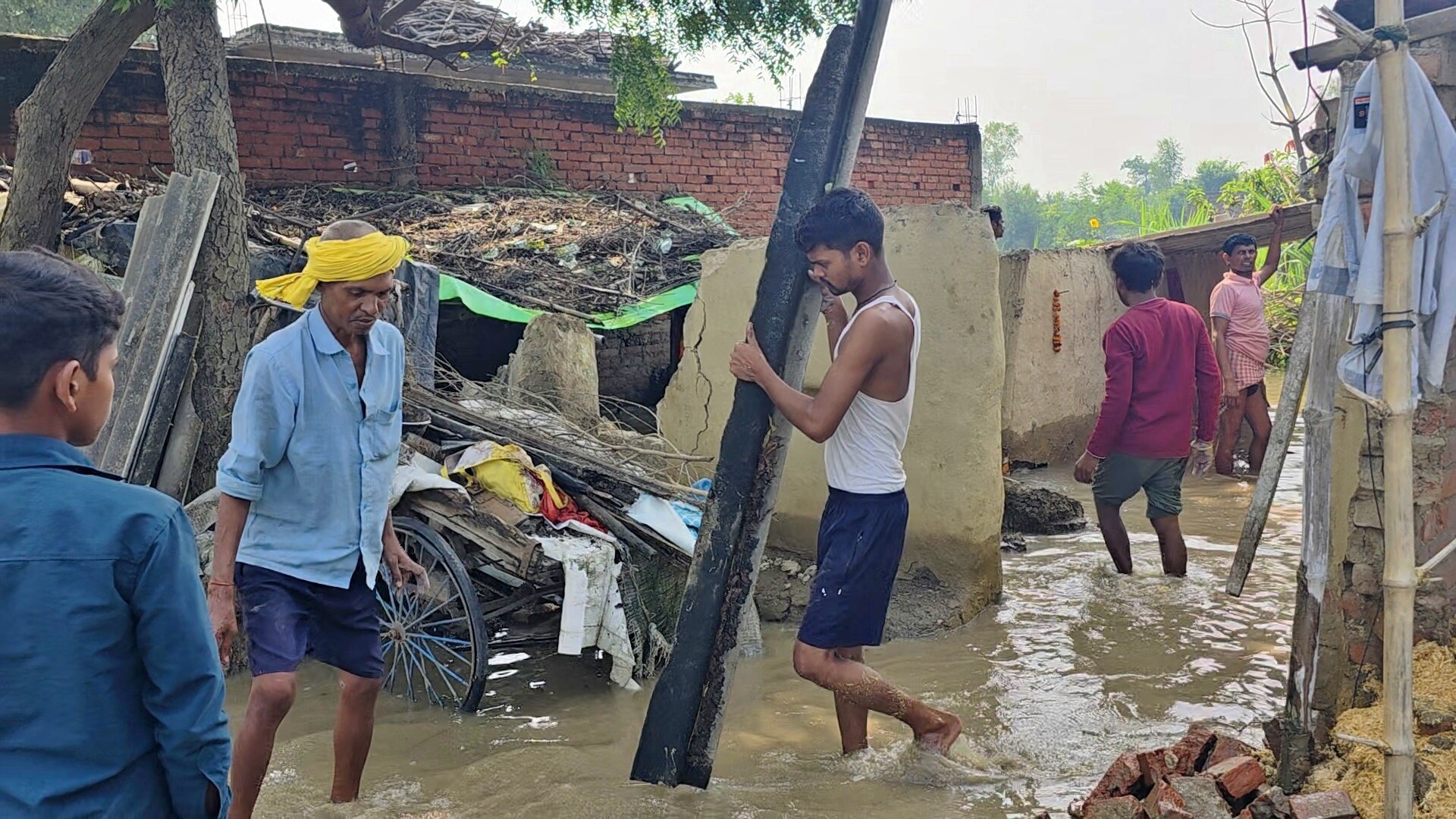 लगातार बारिश और डैम के पानी से केवल खेत और सड़कें ही नहीं डूबी हैं, बल्कि आबादी के इलाके भी प्रभावित हुए हैं. नियमितबाद ब्लॉक के चंदाईत गांव में जलजमाव की वजह से कच्चे मकान धराशाई हो रहे हैं. गोपाल मौर्य का कच्चा मकान रात में अचानक भरभराकर गिर गया. राहत की बात रही कि परिवार के सदस्य बाल-बाल बच गए, लेकिन एक कमरे में बंधी दो गायें गंभीर रूप से घायल हो गईं. गोपाल मौर्य के भाई ओमप्रकाश ने बताया कि उनका खाने-पीने का सामान भी बर्बाद हो गया है. देखें ग्राउंड के हालात-