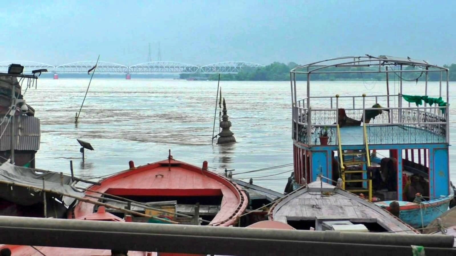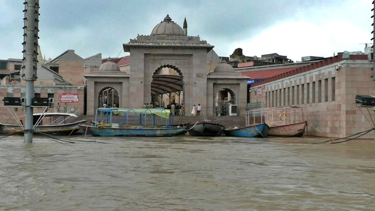ठीक इसके आगे झुका हुआ रत्नेश्वर मंदिर का शिखर बमुश्किल ही दिखाई पड़ रहा है. इसके अलावा सभी 84 घाटों के साइनेज भी बड़ी मुश्किल से ही नजर आ रहें हैं. जल पुलिस दिनभर में कई-कई बार पेट्रोलिंग कर रही है ताकि कहीं कोई घटना न होने पाए.