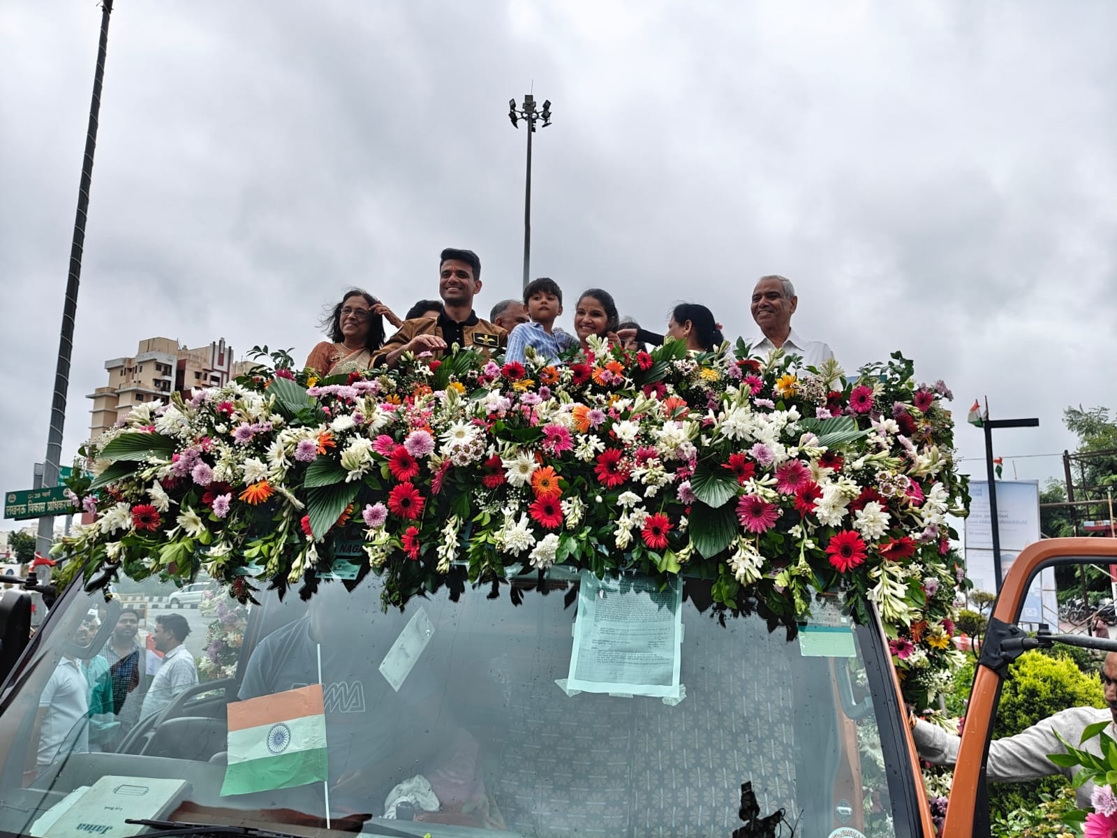 शुभांशु शुक्ला अपनी पत्नी और बेटे के साथ आज सुबह लखनऊ पहुंचे, जहां यूपी के उपमुख्यमंत्री और लखनऊ वासियों ने तिरंग और फूल-मालाओं के साथ एयरपोर्ट पर भव्य स्वागत किया. इस दौरान बैंड की धुनें गूंज रही थीं, जिसने माहौल को और उत्साहपूर्ण बना दिया. वहीं, सूत्रों से मिली जानकारी के अनुसार, सुरक्षा कारणों के चलते शुभांशु को अपने घर जाने की अनुमति नहीं दी गई है, जिसके चलते उनका ये दौरा विशेष रूप से आयोजित विक्ट्री परेड तक ही सीमित रहेगा.