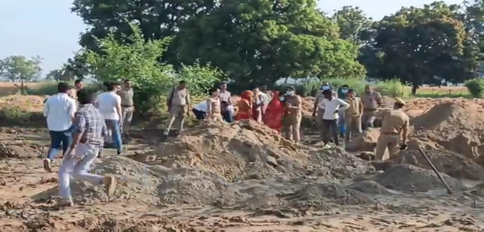 खेत से कंकाल निकालती पुलिस टीम (Photo- Screengrab)