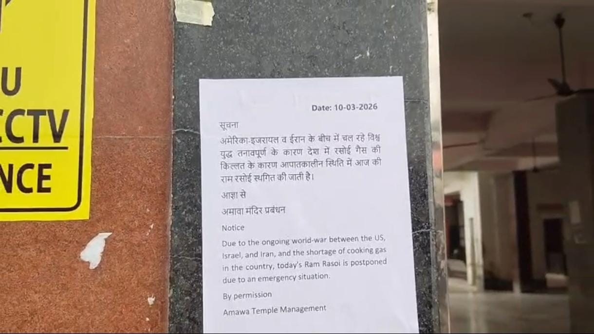 राम मंदिर के पास स्थित अमावा मंदिर की ‘श्रीराम रसोई’ के बाहर प्रशासन ने सूचना चस्पा कर दी है. मंदिर के मैनेजर पंकज कुमार के अनुसार, अंतरराष्ट्रीय युद्ध के तनाव से देश में पैदा हुए गैस संकट के कारण रसोई को समय से पहले बंद करना पड़ा है. अब यह सेवा तभी दोबारा शुरू हो पाएगी जब गैस की आपूर्ति सामान्य होगी. इस फैसले से दूर-दराज से आने वाले हजारों श्रद्धालुओं को निःशुल्क भोजन मिलना बंद हो गया है, जो एक गंभीर आपातकालीन स्थिति है.