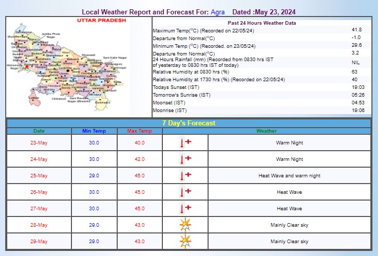 मौसम प्रभारी मोहम्मद दानिश ने बताया कि आने वाले समय में हीटवेव का असर और बढ़ेगा और अभी गर्मी से अगले 5 दिनों तक कोई राहत नहीं दिखाई पड़ रही है. रात का तापमान भी उच्च रहने वाला है यानी गर्म रातें रहने वाली हैं. रात का उच्च तापमान खतरनाक माना जाता है क्योंकि इससे शरीर को ठंडा होने का मौका नहीं मिलता है. शहरों में रात के समय गर्मी बढ़ना आम है.