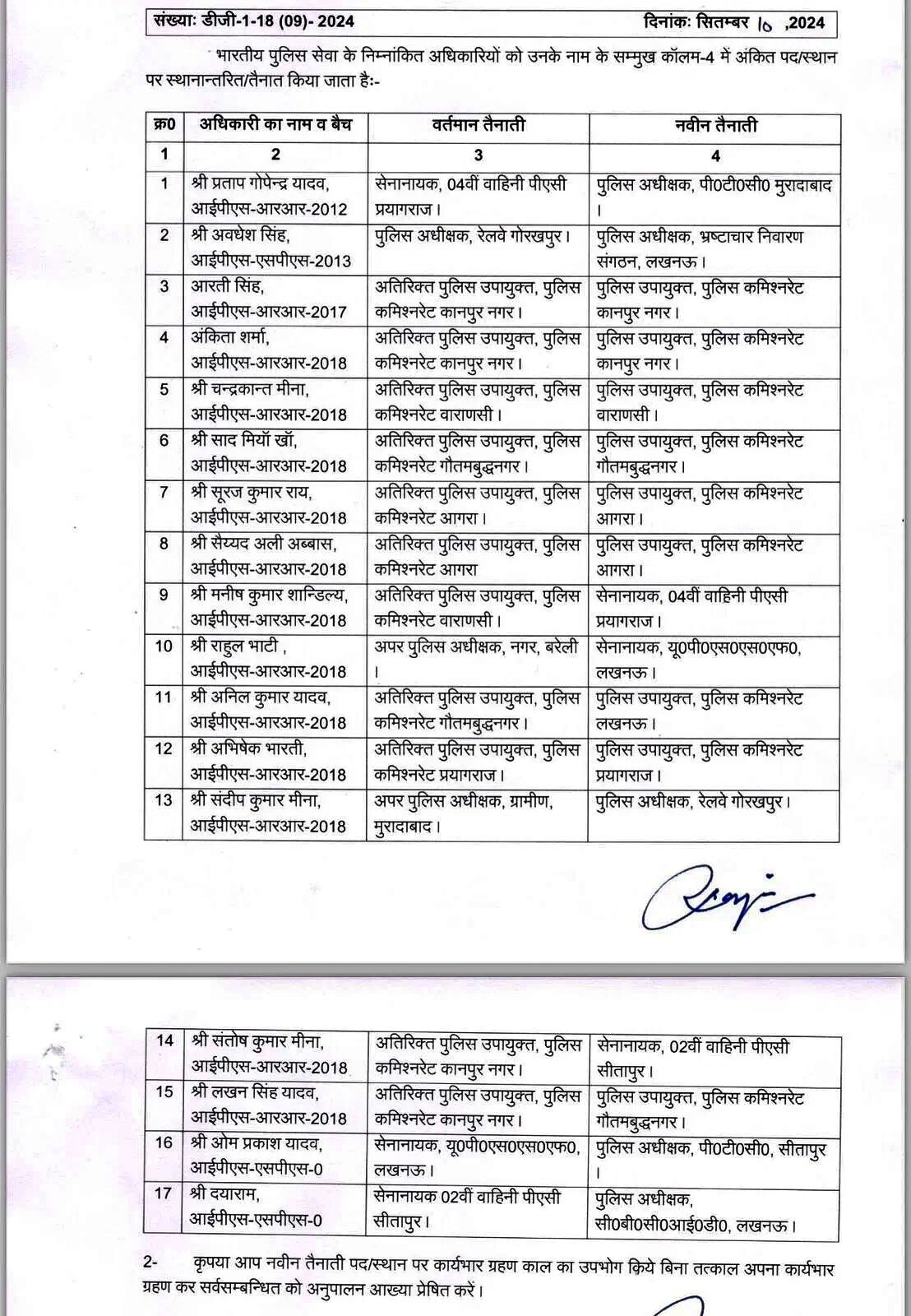 IPS अनिल कुमार यादव को पुलिस उपायुक्त पुलिस कमिश्नरेट लखनऊ भेजा गया है और IPS अभिषेक भारती को पुलिस उपायुक्त, कमिश्नरेट प्रयागराज, आईपीएस संदीप कुमार मीना को एसपी रेलवे गोरखपुर और IPS संतोष कुमार मीना को सेनानायक 2वीं वाहिनीपीएसी सीतापुर के पद पर तैनात किया गया है.