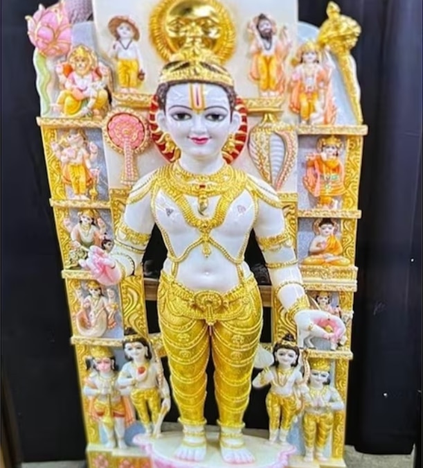 जिस मूर्ति को गर्भगृह में स्थापित करने के लिए चुना गया वह मैसूर के मूर्तिकार अरुण योगीराज ने बनाई है. उन्होंने तीन अरब साल पुरानी चट्टान पर सावधानीपूर्वक मूर्ति को तराशा है. जो अपने नीले रंग की कृष्ण शिला के लिए जानी जाती है. इस प्राचीन पत्थर की खुदाई मैसूर के गुज्जेगौदानपुरा गांव से की गई थी, जिससे मूर्ति में कालातीत भव्यता का तत्व जुड़ गया.