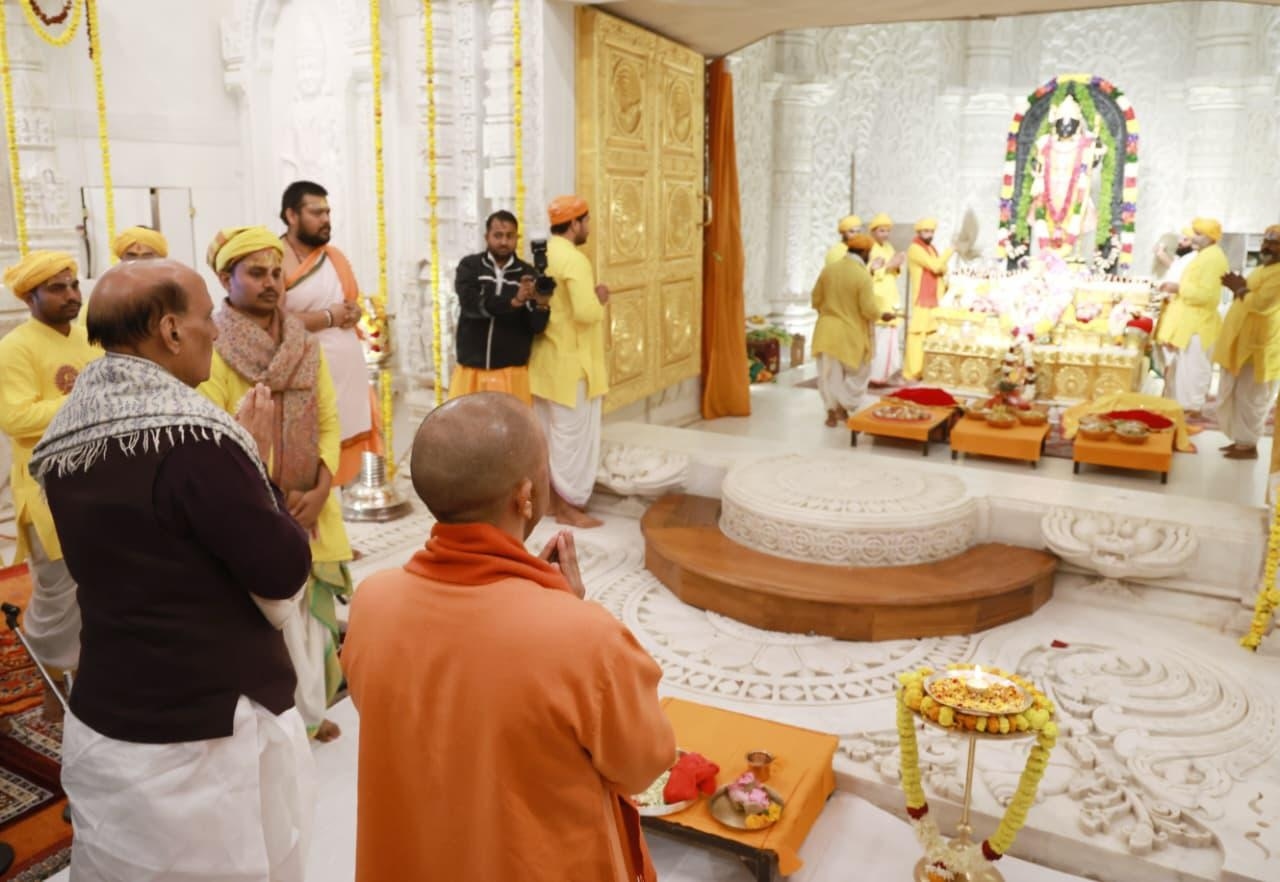 Ayodhya Ram Mandir में राजनाथ सिंह और सीएम योगी ने रामलला के किए दर्शन