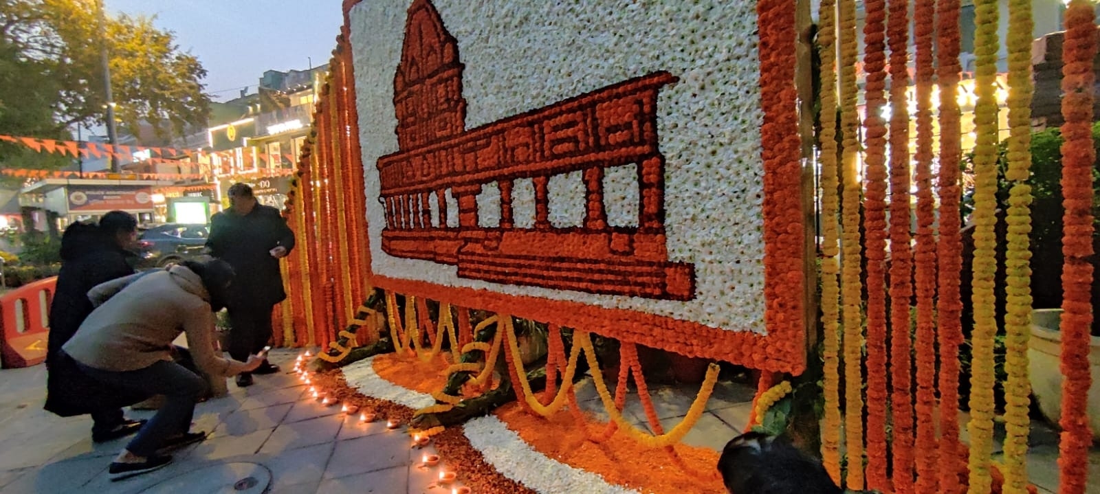 राजधानी दिल्ली के खान मार्केट में राम मंदिर में रामलला की प्राण प्रतिष्ठा से पहले रविवार को छोटी दीवाली मनाई गई. पूरा बाजार दुल्हन की तरह सजा हुआ है. करीब 1300 दिए और 2000 कैंडल जलते ही पूरा मार्केट दीयों की रोशनी मे नहा गया.