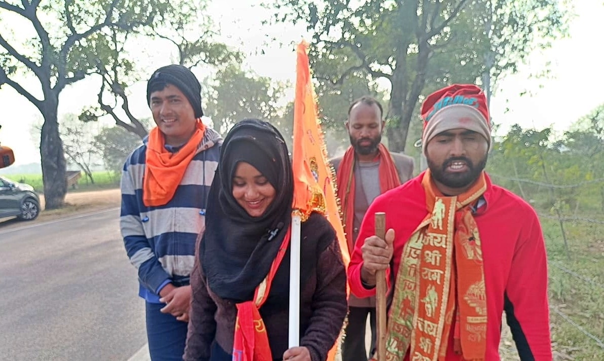 रामलला की प्राण प्रतिष्ठा के अवसर लोग अपने-अपने तरीके से भाव प्रकट रहे हैं. इसी कड़ी में एक मुस्लिम लड़की मुंबई से पैदल चलकर अयोध्या जा रही हैं. उनका नाम शबनम शेख है. हिजाब पहने और हाथ में भगवा ध्वज लिए शबनम का जगह-जगह स्वागत किया जा रहा है. मुंबई से अयोध्या की दूरी 1500 किलोमीटर से भी ज्यादा है.