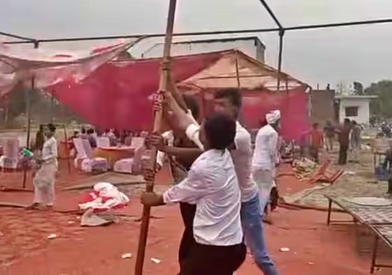उत्तर प्रदेश के बस्ती जिले में मौसम ने एक मुस्लिम जोड़े की शादी में ऐसी खलल डाली कि दूल्हा-दुल्हन के अरमानों पर पानी फिर गया. ठीक शादी से पहले आया आंधी-तूफान पंडाल ही उड़ा ले गया. कुर्सियां इधर-उधर भागने लगीं. इतना ही नहीं खुद दूल्हे राजा का सेहरा तक उड़ गया. वह मंडप से दूर जाकर खड़ा हुआ. तूफान ने कुछ ही मिनटों में सबकुछ तहस-नहस कर दिया.