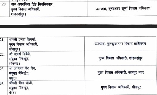 उत्तर प्रदेश सरकार ने बड़ा प्रशासनिक फेरबदल करते हुए 24 आईएएस अधिकारियों के तबादले किए हैं. साथ ही कई जिलों के जिलाधिकारी (DM) भी बदले गए हैं.