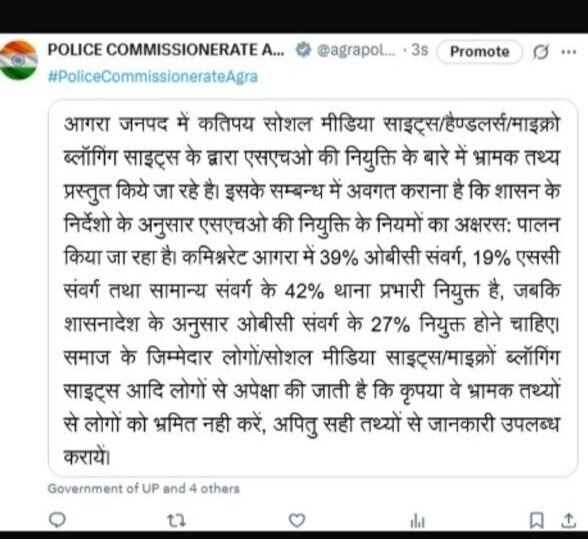 आगरा पुलिस कमिश्नरेट में ठाकुर जाति के थानेदारों की तैनाती को लेकर भी अखिलेश यादव ने आरोप लगाए, जबकि यहां 21 सामान्य श्रेणी के थानों में 8 ठाकुर, 9 ब्राह्मण और 4 अन्य सामान्य जाति के थानेदार हैं.