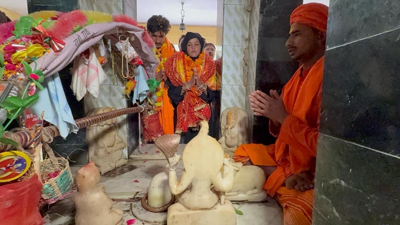 Uttar Pradesh News: संभल के बदनपुर बसई गांव की रहने वाली तमन्ना मलिक ने अपने हिंदू पति अमन त्यागी के साथ हरिद्वार से गंगाजल लाकर शिव मंदिर में जलाभिषेक किया. उन्होंने साढ़े तीन साल पहले प्रेम विवाह की बाधाएं दूर होने पर यह मन्नत मांगी थी. रविवार को महाशिवरात्रि के अवसर पर बुर्का पहने तमन्ना ने क्षेम नाथ मंदिर में 'हर-हर महादेव' के नारों के बीच पूजा-अर्चना की.