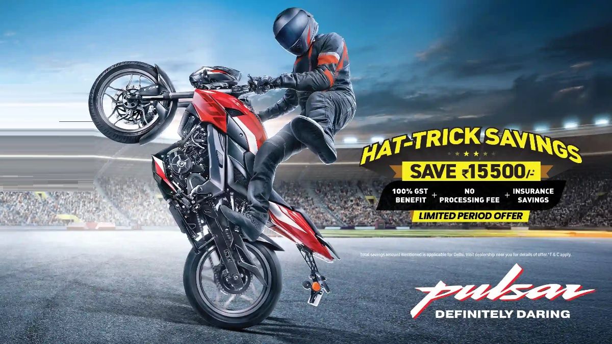 बजाज ऑटो ने अपने लोकप्रिय पल्सर हैट्रिक ऑफर को दोबारा लॉन्च किया है. इस ऑफर के तहत ग्राहकों को 3 अलग-अलग तरीके से लाभ मिलेगा.