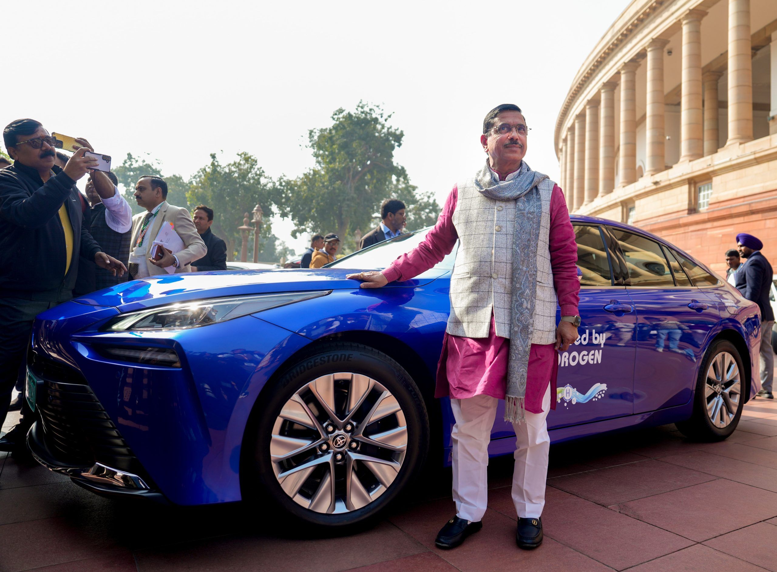 केंद्रीय मंत्री प्रह्लाद जोशी गुरुवार को हाइड्रोजन से चलने वाली कार से संसद सत्र में हिस्सा लेने पहुंचे. ब्लू कलर की टोयोटा मिराई कार ने हर किसी का ध्यान अपनी तरफ खींचा.