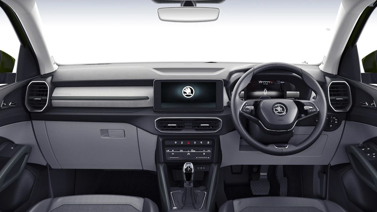 Skoda Kylaq का केबिन काफी हद तक Kushaq से मिलता जुलता है. इसमें 10-इंच टचस्क्रीन इंफोटेंमेंट सिस्टम दिया गया है.