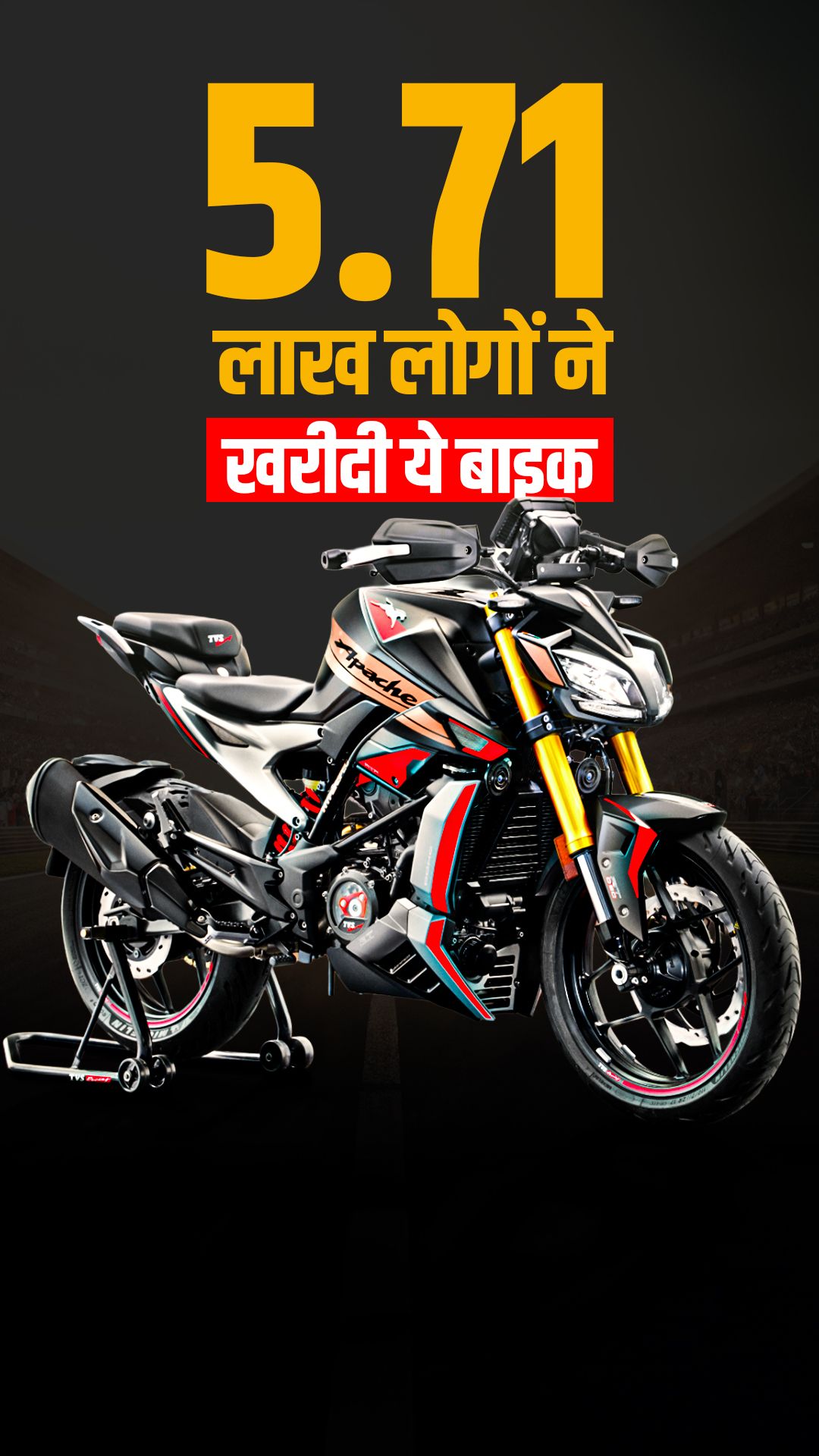 Apache सीरीज ने FY2026 में 5.71 लाख यूनिट्स की बिक्री दर्ज की. यह पहली बार है जब Apache ने 5 लाख यूनिट्स का आंकड़ा पार किया है.