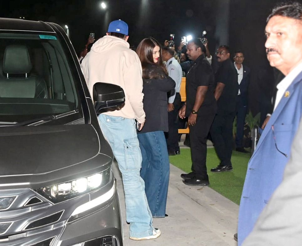 इधर ऐश्वर्या राय ब्लू जींस और ब्लैक ब्लेजर में नजर आईं. बेटी के स्कूल फंक्शन में उन्होंने पति अभिषेक बच्चन संग धांसू एंट्री ली.