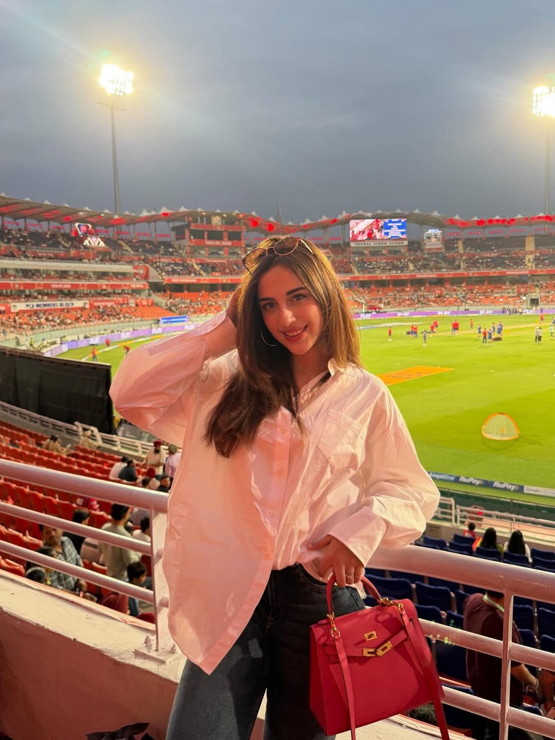 सिर पर चश्मा और हाथ में बैग थामे समरीन टशन दिखाती नजर आईं. स्टेडियम में उन्होंने कई किलर पोज दिए.
