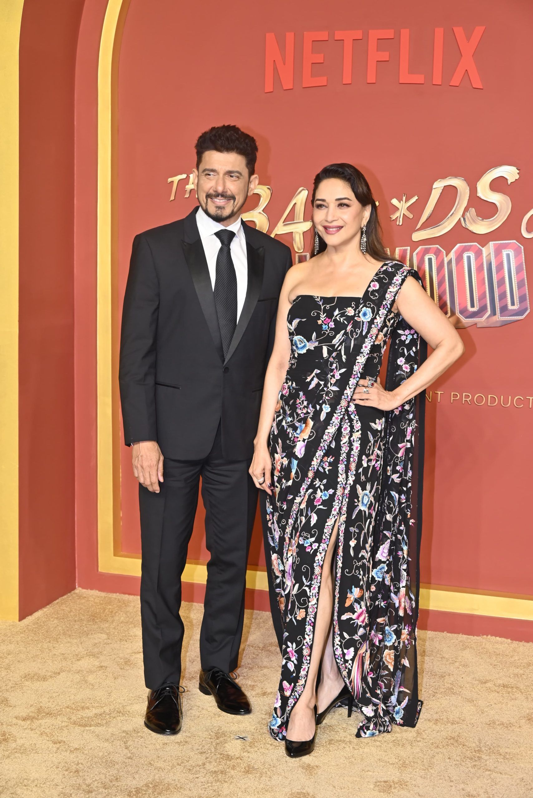 इवेंट में माधुरी दीक्षित अपने पति डॉक्टर श्रीराम नेने के साथ दिखीं. एक्ट्रेस ब्लैक कलर की फ्लोरल इंडियन-वेस्टर्न आउटफिट में नजर आईं. वहीं उनके हसबैंड ब्लैक कलर के कोट-पैंट में थे.