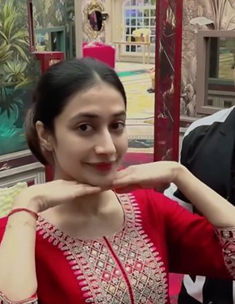 पवन सिंह शो में नहीं हैं, लेकिन धनश्री अपना वादा नहीं भूलीं. लेटेस्ट एपिसोड में वो लाल सूट और बिंदी में सजी-धजी दिखीं.