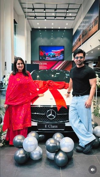 कपल ने अपने लिए चमचमाती व्हाइट कलर की मर्सिडीज बेंज ई क्लास कार खरीदी है. दोनों पूरे परिवार के साथ गाड़ी की डिलीवरी लेने पहुंचे.
