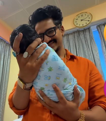 नन्हे काजू को हाथ में लेकर हर्ष काफी देर तक उसे दुलारते रहे. हर्ष ने बेटे को प्यारी सी Kiss दी.