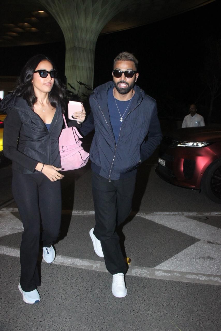 हार्दिक अपनी पीली लेम्बोर्गिनी उरुस गाड़ी से उतरे, जिसके बाद उन्होंने माहिका की तरफ देखा और उन्हें एयरपोर्ट की तरफ गाइड किया. दोनों इस दौरान ब्लैक आउटफिट में ट्यूनिंग करते नजर आए.