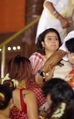 वीडियो में देख सकते हैं काजोल ने व्हाइट एंड रेड बंगाली साड़ी पहनी हुई है. वे सीढ़ियों से उतर रही हैं, तभी एक शख्स जो कि उनका बॉडीगार्ड बताया जा रहा है, उन्हें रोक लेता है. एक्ट्रेस को अपनी तरफ खींचता है.