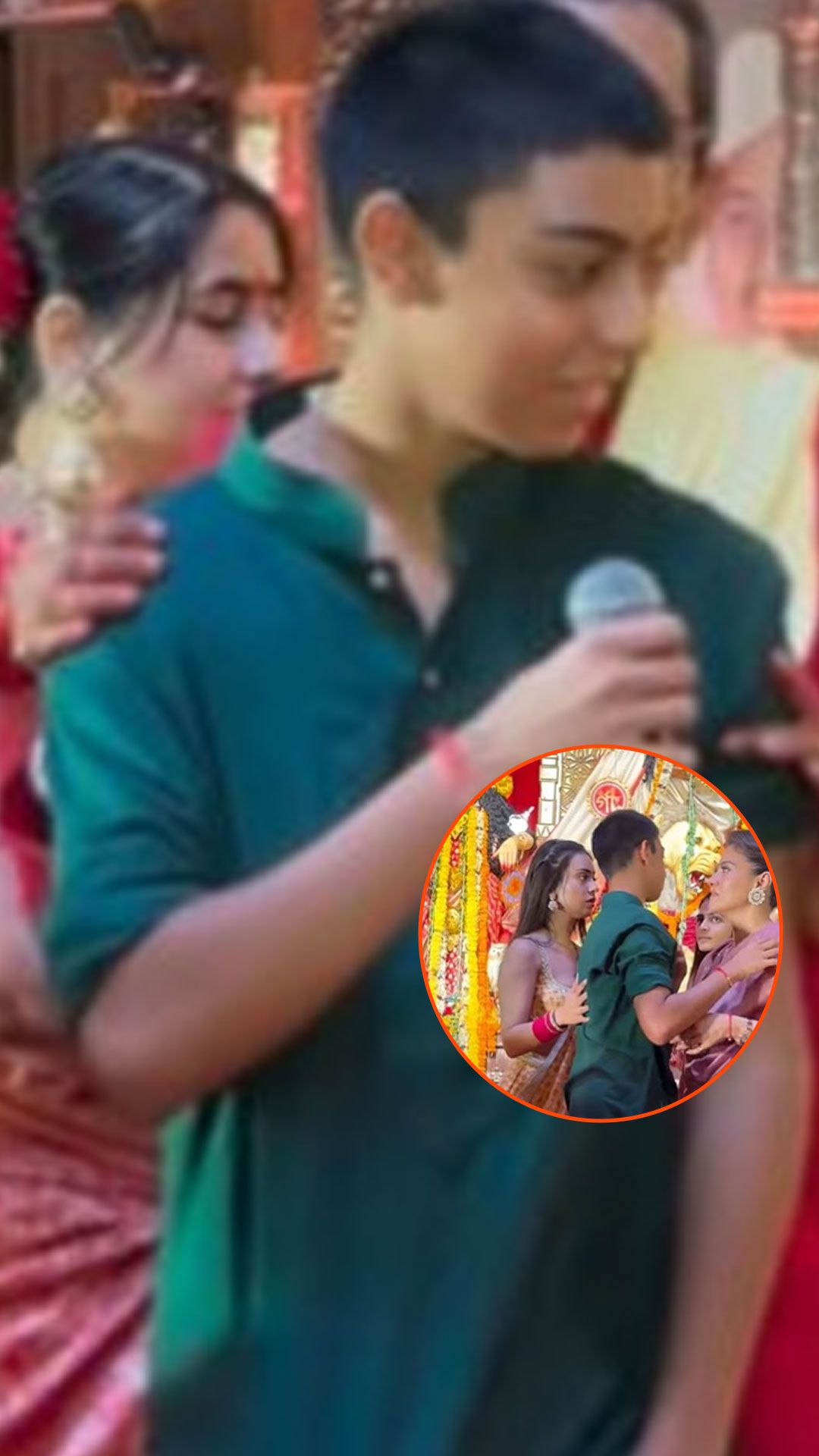 वीडियो में देख सकते हैं कि युग अपनी मां काजोल के साथ दुर्गा पूजा के लिए पंडाल बैठे हैं. पंडित जी युग देवगन को जबरदस्ती दुर्गा मां का जयकारा करने के लिए बोलते नजर आ रहे.