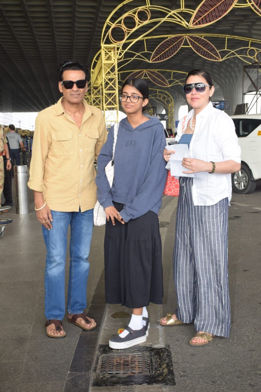 मनोज बाजपेयी को मुंबई एयरपोर्ट पर पत्नी शबाना रजा और बेटी एवा नायला के साथ स्पॉट किया गया. सभी कहीं रवाना हो रहे थे.