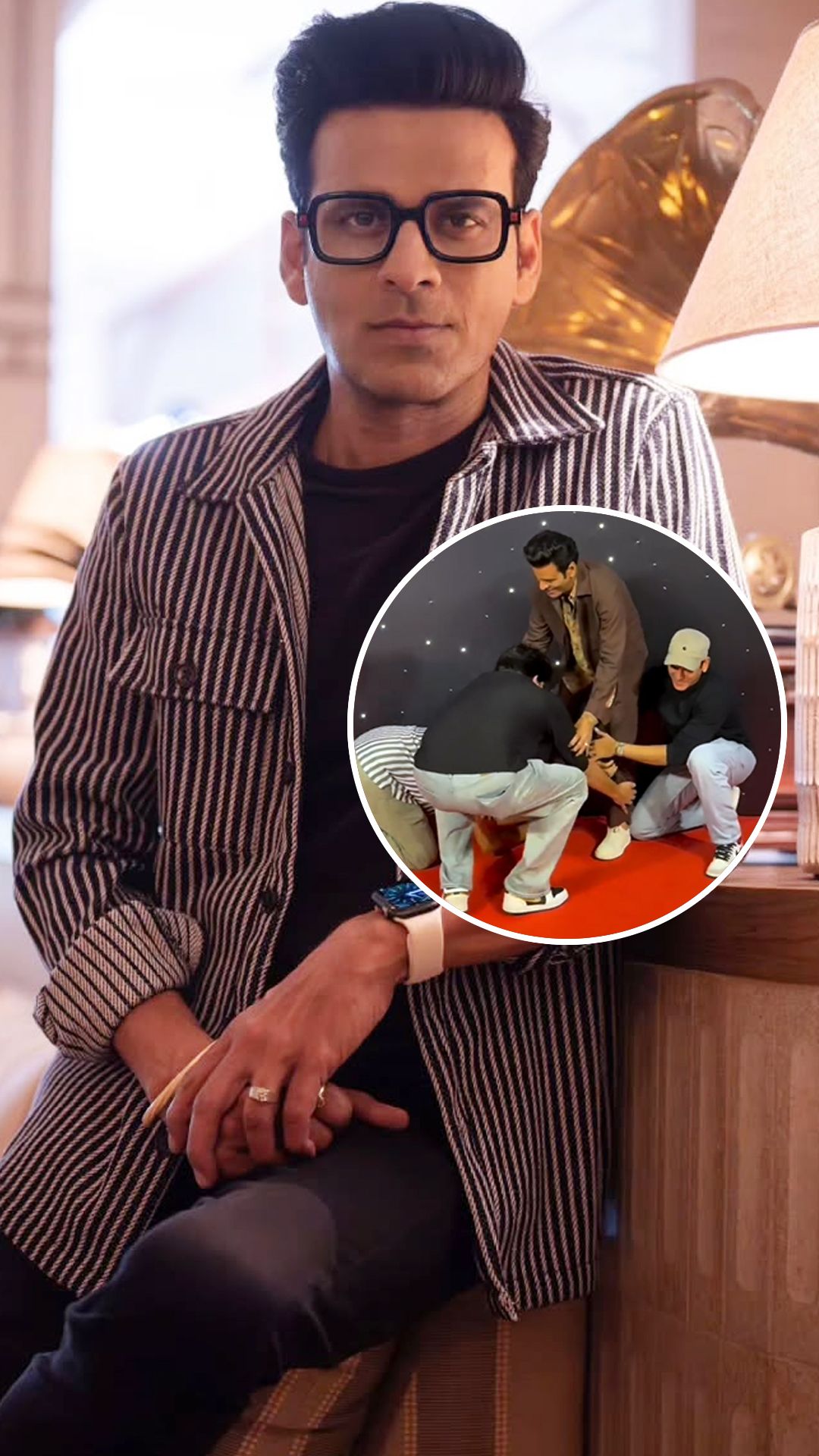 तीनों एक्टर्स मनोज बाजपेयी के आगे झुके. अनुराग और विजय ने मनोज के पैरों को पकड़ लिया और वहीं पर बैठ गए. ये देख मनोज की हंसी नहीं रुकी. पैप्स भी खिलखिला उठे.