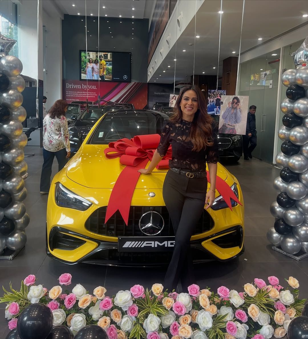 निया ने गाड़ी के साथ काफी सारी फोटोज फैन्स के साथ शेयर की हैं, जिसमें देखा जा सकता है कि वो येलो कलर की मर्सेडीज गाड़ी के सामने खड़ी नजर आ रही हैं.