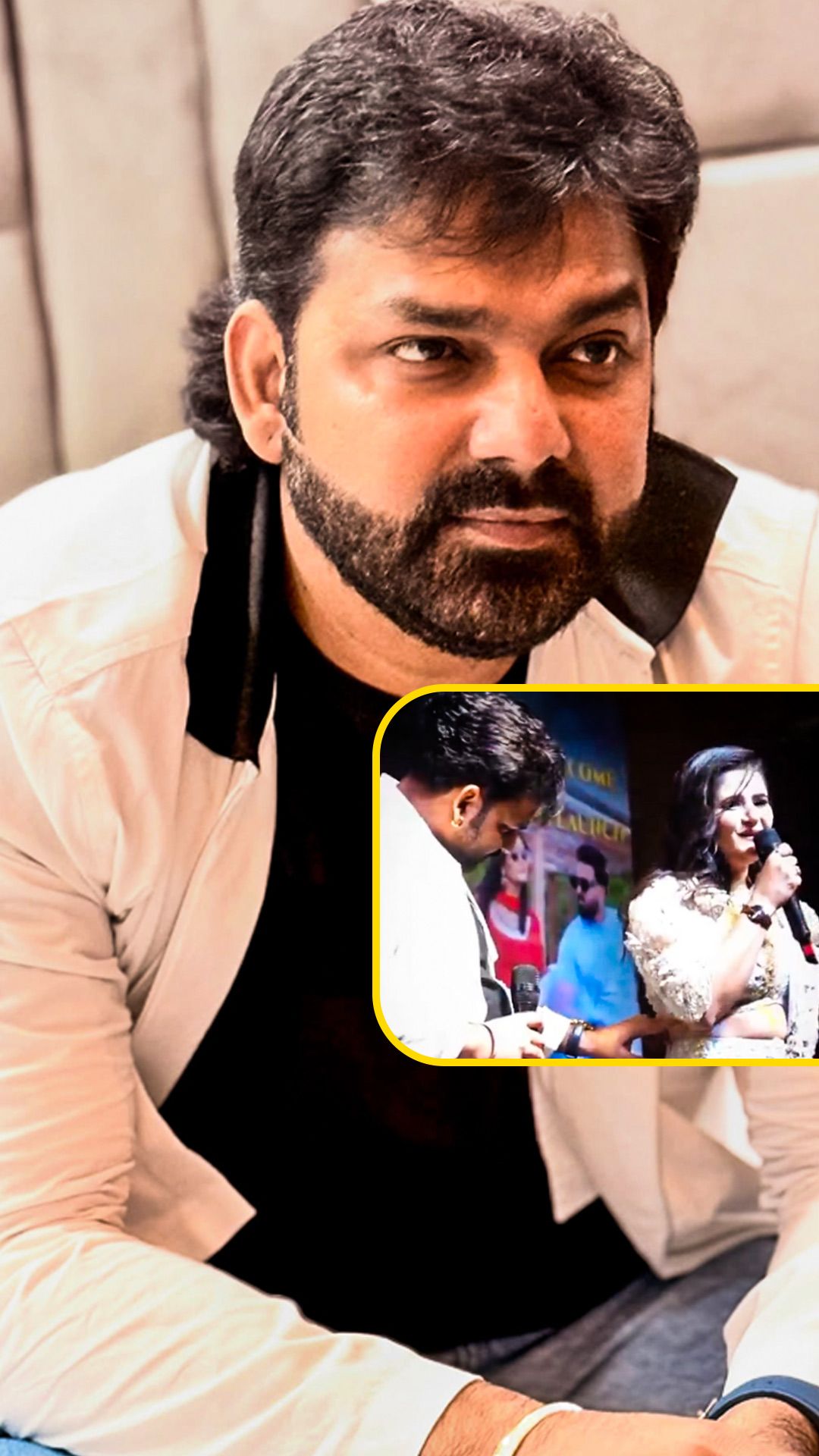 वो अपनी को-स्टार अंजलि राघव संग एक इवेंट में हैं. अपने नए गाने 'सईयां सेवा करे' का प्रमोशन कर रहे हैं. दोनों स्टेज पर हैं.